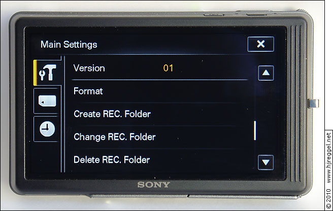 FirmwareWhen I got my camera back from the service, the note only said "Softwareupdate", so I decided to investigate. It looks like SONY realeases only very few firmware updates for their cameras. The firmware version is not displayed during normal operation, it has to be activated with a certain procedure. The only available update for a T series camera was for an older model using buttons instead of a touchscreen, so these instructions did not help much. But with only four buttons and the zoom lever available, there are ony very few options left for powering on the camera while pressing another button. To activate the hidden menu item, hold the zoom lever in telephoto position (T) while powering on the camera using the playback button. Then press MENU, enter the setup mode (toolbox icon), and page down to the fourth page...