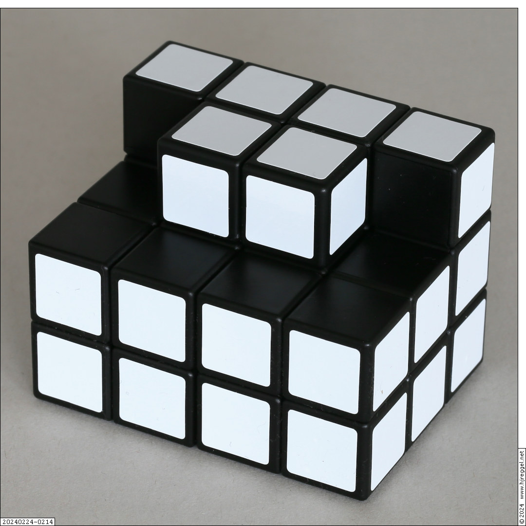Note: The photo shows the assembly of the remaining eight pieces not making a proper Cuboid, but a "Blankenstein Cube" instead.
