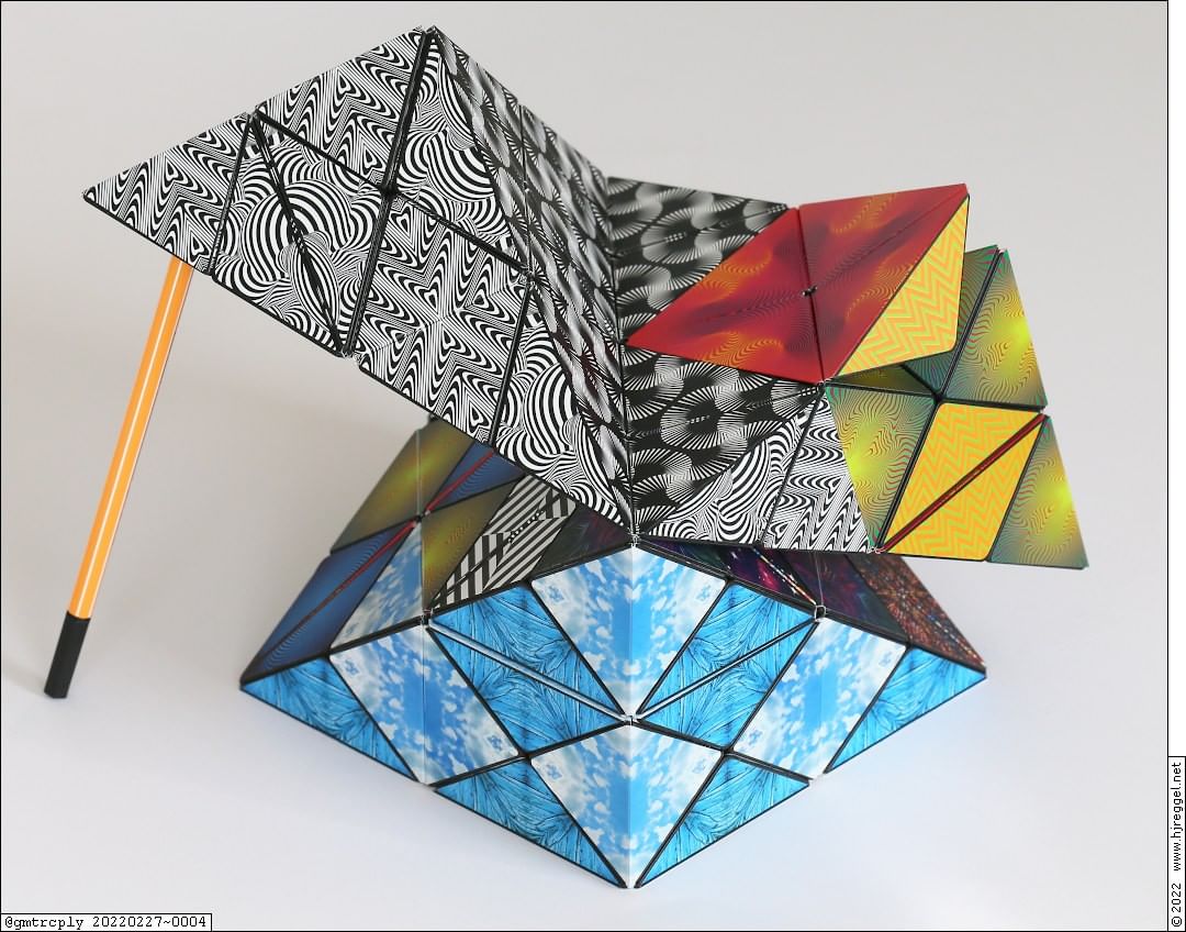 However, a TomBox can be flipped open at six positions: Four large pyramids at four of the corners, and two small parts.